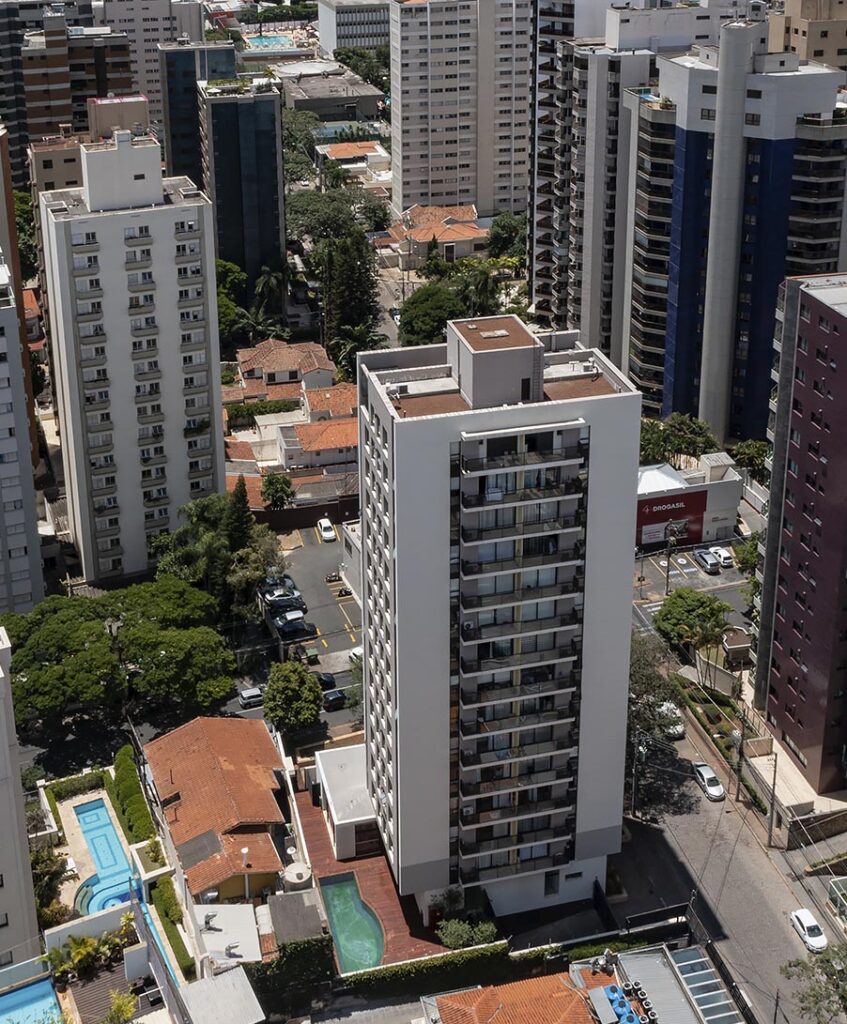 São 54 apartamentos de 57m² distribuídos em 14 pavimentos em total de 5712m² de área construída. Com excelente localização e comodidades como piscina, sauna, espaço gourmet e fitness o empreendimento ainda conta com duas coberturas penthouse.