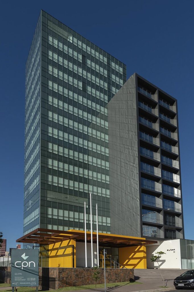O Evian foi projetado para otimizar a circulação e ocupação de seus amplos espaços. O edifício apresenta acessos modernos e infraestrutura inovadora, marcada pela excelência e pelo alto padrão de acabamentos. Incorporado e construído pela CPN, o Evian possui 2 subsolos e 14 pavimentos de lajes. Localizado no bairro da Guanabara, em Campinas, o edifício se destaca na paisagem pela volumetria de sua fachada e pelo pórtico que marca sua entrada.