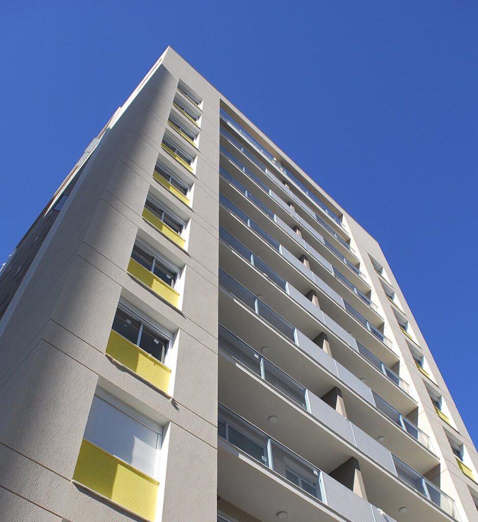 Edifício residencial com excelente localização. Apartamentos com 2 suítes e 4 apartamentos por andar. No térreo estão a academia e o salão de festas do edifício.